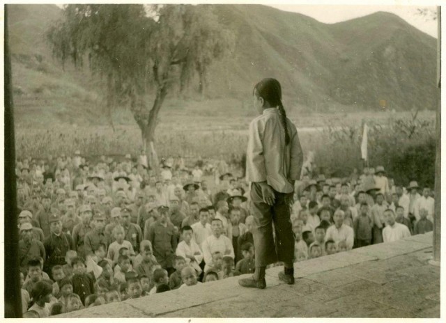 1939 年,平西抗日根据地,儿童团团长在群众集会上。林迈可/摄影