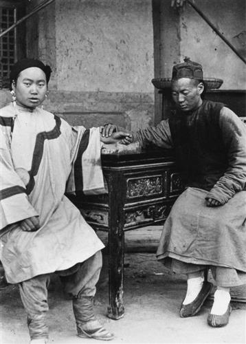 20 世纪 10 年代左右,陕西汉中,大夫为女病人把脉。摄影/南怀谦