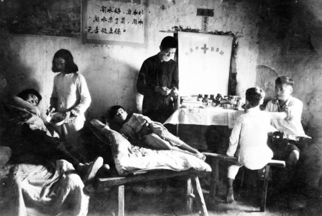 1958 年,湖北黄冈,检查治疗血吸虫病人。提供/湖北省浠水县血吸虫病防治所