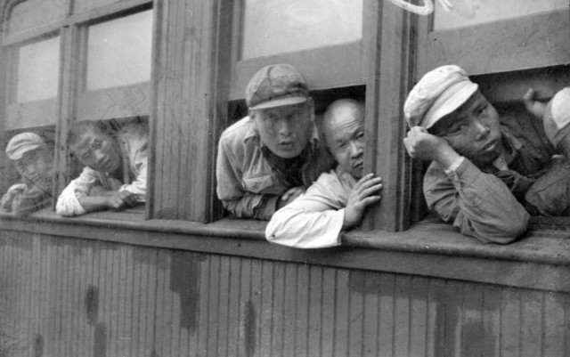 1952 年,江苏南京,西站上的客车旅客们。摄影/晓庄