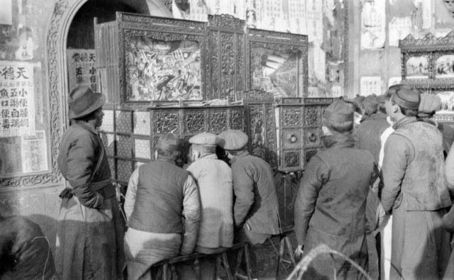 20 世纪 20 年代 -30 年代,街头的拉洋片表演。摄影/史丹利 · 格雷戈里