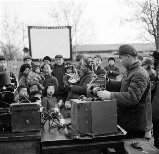 1955 年,北京,电影放映下乡队为农业生产合作社的社员放映电影。摄影/牛畏予