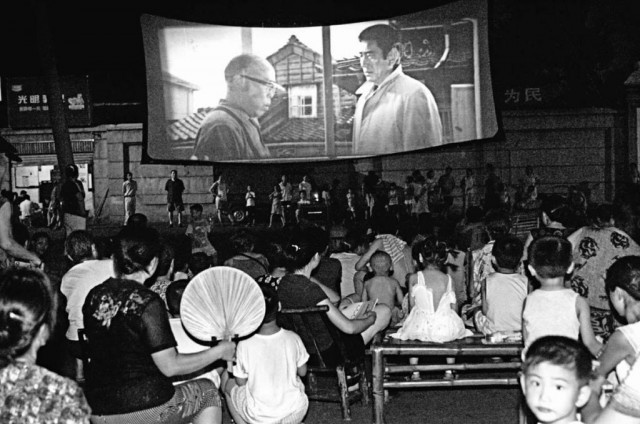 1993 年,湖北武汉,一边纳凉一边看电影。摄影/胡伟鸣
