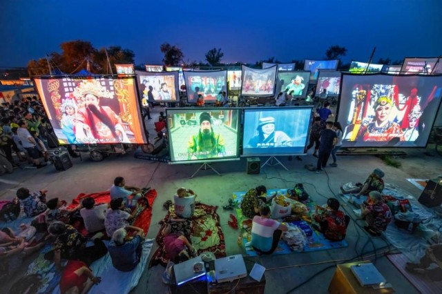 2018 年,河南鹤壁,庙会上的电影 " 大集 " 。摄影/万文英