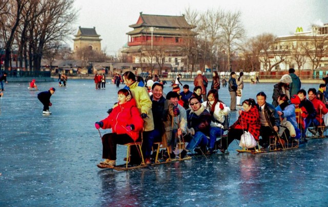 1995 年,北京,冰上游龙。摄影/王生生