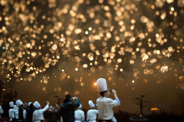 2014 年,北京,厨师分享 APEC 焰火。摄影/廖攀