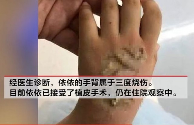 送往医院后医生诊断为三级烧伤,在接受了植皮手术之后还要留院观察。