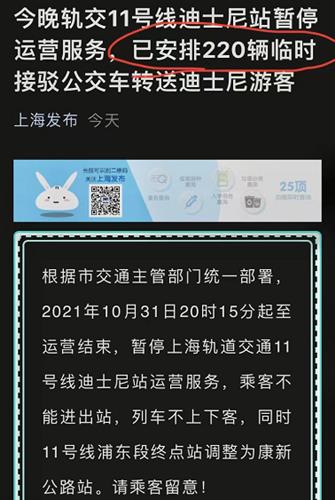 稍后,上海政府宣布安排了220多辆公交车临时转送迪士尼游客。