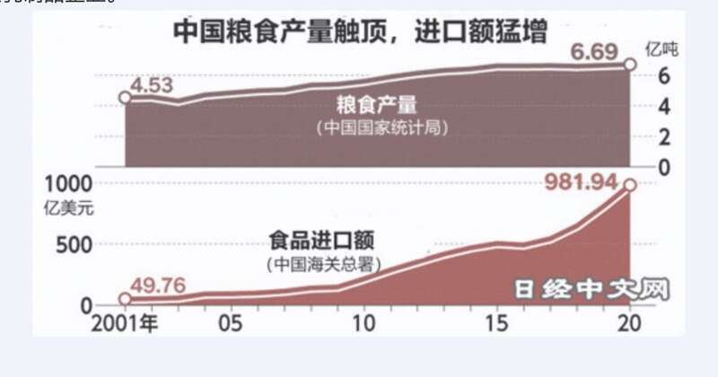 联合国粮农组织(FAO)推算,全球11月食品价格指数比1年前大约高了3成。对此,日本资源与粮食问题研究所代表柴田明夫认为中国大量储备粮食是价格走高的原因之一。报导说,由于国内生产跟不上,中国因此增加谷物等粮食的进口;而随着中国经济发展,猪等饲料用需求扩大,需要外国优质农产品的消费者也在增加。