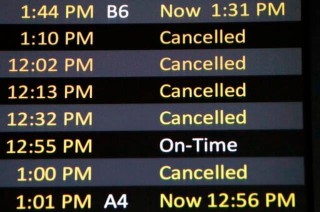 各航空公司已开始尝试着提前取消航班,这样乘客就不会被困在机场,并使得机票柜台前人满为患,人们争先恐后地改签机票。捷蓝航空公司本周表示,到1月