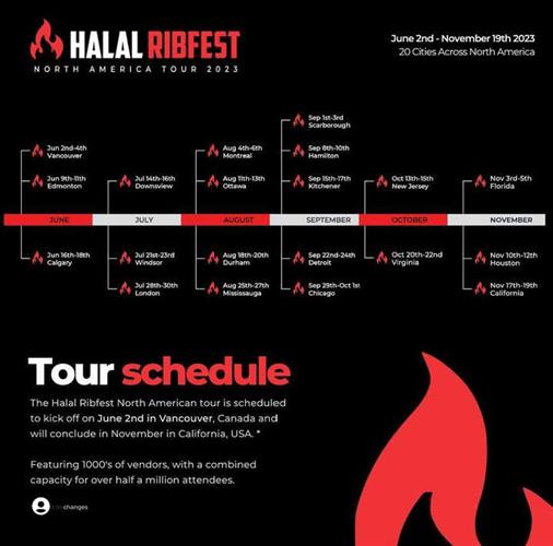 北美最大的清真烧烤和快餐卡车节,继2022年多伦多 Halal Ribfest 取得巨大成功之后,将在加拿大13个城市和美国7个城市举行。此次巡回活动将于6月2日从温哥华开始,11月19日到加州结束。