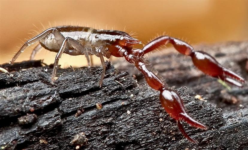 但对于假蝎子的猎物来说,情况要严峻得多。它们的钳子有毒腺,所以当它们钳住猎物时,猎物会立即被麻痹。蝎子将唾液注入猎物体内,以液化的内容物为食,类似于蜘蛛的吃法。