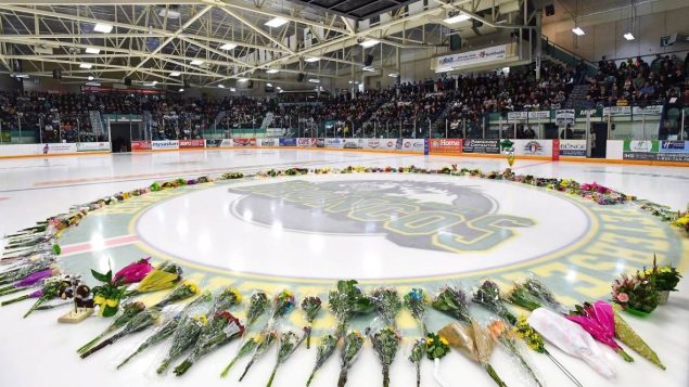 4月8日在 洪堡Elgar Petersen体育馆追悼会上 / Canadian Press