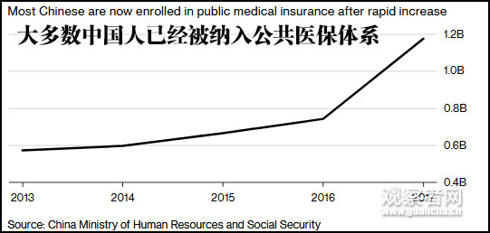 彭博社称,目前,中国人可享受的医疗保险比以往任何时候都多。根据人社部数据,大多数中国人都已纳入公共社保体系,可以享受基本的社会保障。