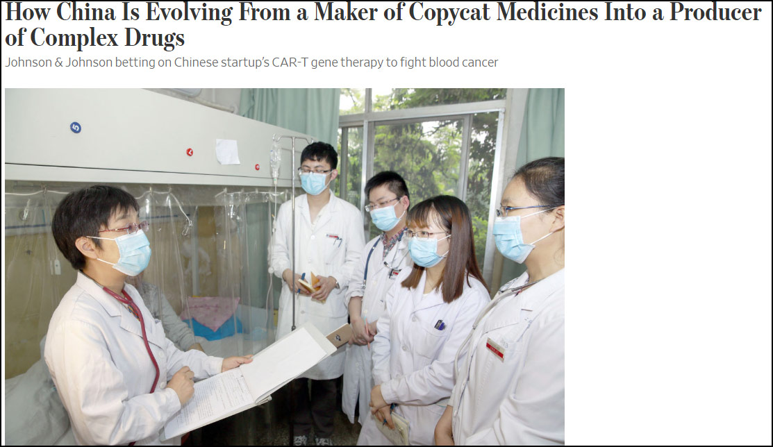 报道称,强生和南京传奇生物科技之间的合作表明,中国正努力从廉价的仿制药制造商变为复杂药品的生产商。