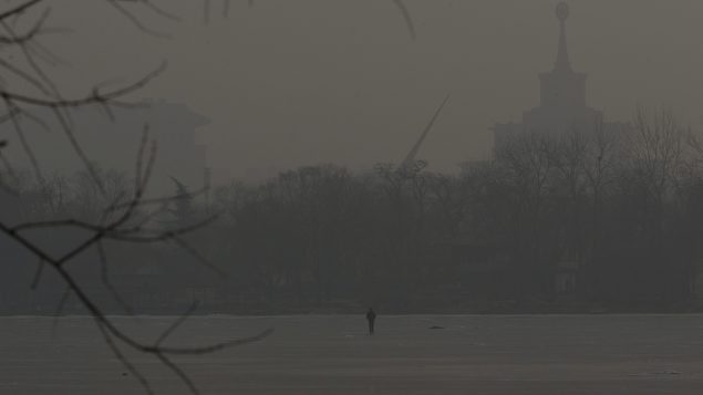 2013年一月,北京北海公园笼罩在雾霾之中。 (AP Photo/Alexander F. Yuan)