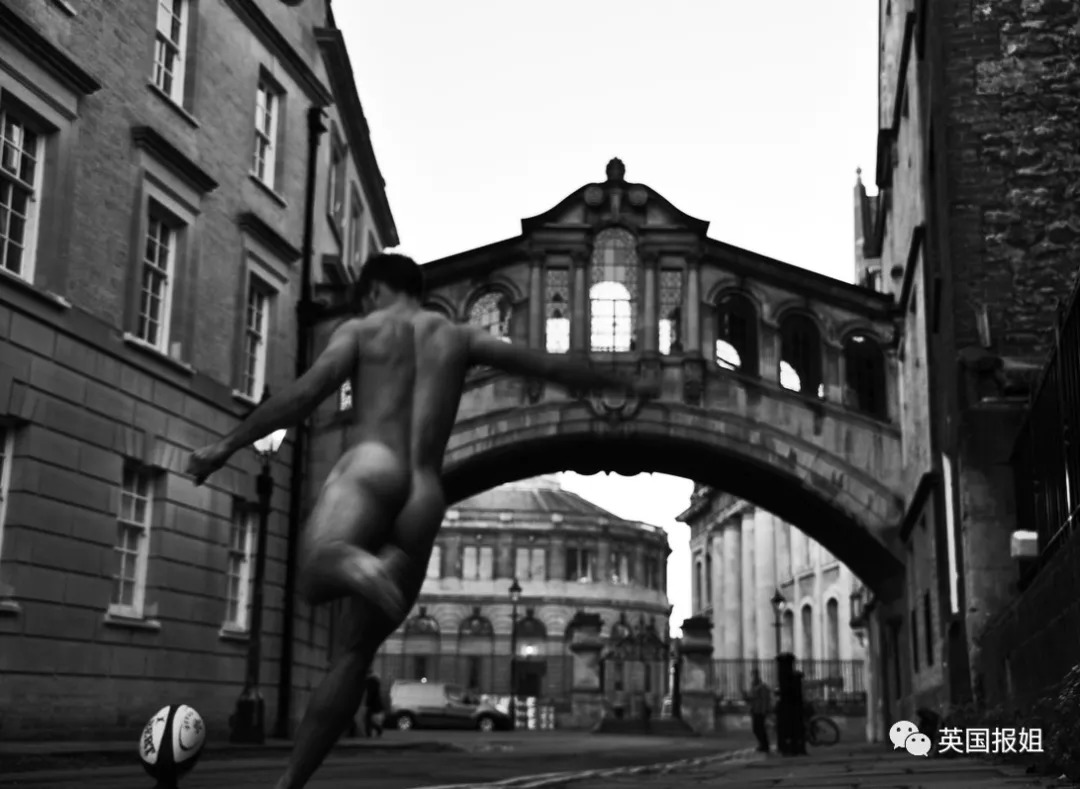 (图源:DM) 就这样,每年发行裸体月历的传统延续到了现在,出了不少经典的摄影作品。不过,牛剑两所学校的学子们的竞争,远远没有结束。 前一脚,牛津大学的男女橄榄球队员们为慈善而裸,在学校的各大景点拍摄。