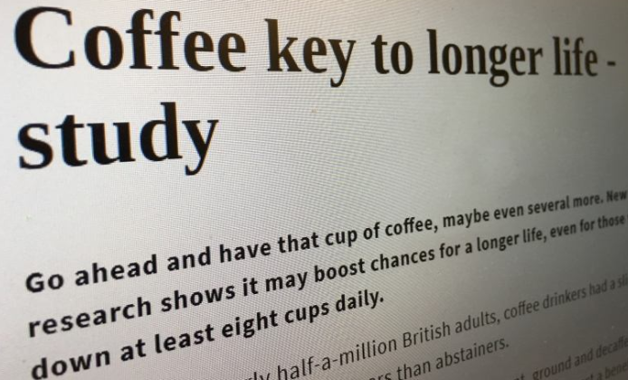 比如,“研究显示喝咖啡是长寿的关键”, “想长寿?科学研究让你多喝咖啡”。而实际情况却根本就不是这么回事。