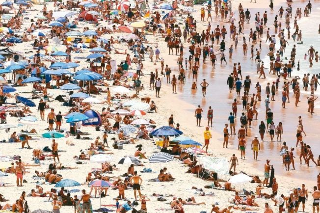 雪梨邦迪海滩七日挤满戏水消暑游客。 欧新社