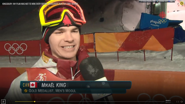 参加平昌冬季奥运会的加拿大运动员迈克尔·金斯伯里(Mikael-kingsbury)星期一赢得空中技巧滑雪金牌。