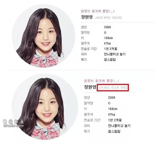 有场公开前三名的时候,妹妹和第二名来自日本的练习生矢吹奈子身高相差了19cm,(张元英官方身高169)。