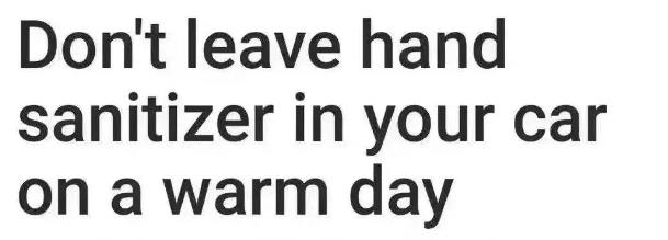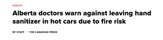 夏天来了,一些加拿大城市最近气温已经高达30摄氏度。疫情期间,很多人会把免洗洗手液(hand sanitizers)放在车里,殊不知这其中暗藏危险隐患,甚至可能会引发致命后果。