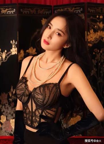 照片中杨幂身穿黑色吊带蕾丝内衣,秀出迷人肩颈线条与火辣身材,诱惑力十足,黑色丝绒手套略带一丝复古气息。单身叉腰歪头看向镜头眼神妩媚,红唇与古色古香的背景相衬托,视觉效果炸裂。虽性感但却不风尘,脖间四串珍珠更是彰显一丝贵气。