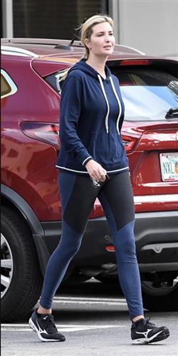 本周四,伊万卡送小阿拉贝拉去上课,母女两个人的穿着很像,伊万卡上身是一件休闲海军蓝连帽运动服,搭配海军蓝与黑色紧身运动裤,脚上的黑色美津深运动鞋售价140美元(约合900元人民币)。