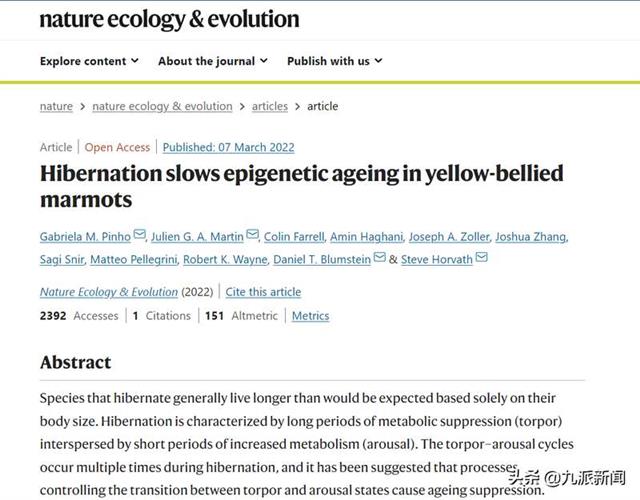 这一研究由衰老研究权威专家Steve Horvath的团队主导,他曾经以发明了测量衰老速度的“生理年龄时钟”闻名于世。研究选用的黄腹土拨鼠寿命长达15-20年,是普通小鼠的10倍,其冬眠时间长达7、8个月。科学家们通过精确的测量发现,在正常活动的季节,土拨鼠的生理年龄稳定增加,但一旦进入冬眠季节后,他们的生理年龄就不再变化——这就是说,土拨鼠的衰老在冬眠期间突然中止了。