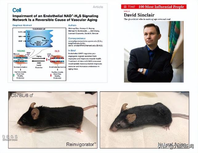 为了模拟“饥饿疗法”的作用,辛克莱尔在2013年发现了一种小分子物质,可以显著激活Sirtuins“长寿蛋白”,这一技术最终发展成目前已在高净值人群中广泛使用的哈佛衰老抑制剂瑞维拓。辛克莱尔等人在动物实验中证实,通过口服与瑞维拓剂量相近的烟酰胺腺嘌呤二核苷酸前体分子,可使18个月(相当于人类60岁)的小鼠的寿命延长31%,小鼠的血管死亡、认知下降甚至是外貌老化都得到了极大逆转。这一惊人结果,迅速引发了《Nature》、《Science》等顶级学刊上上百篇论文的跟进。
