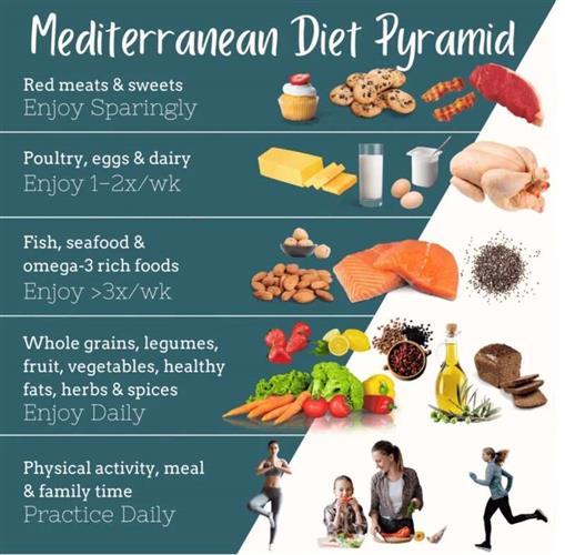 强调以全谷物、健康脂肪、蔬菜、水果和海鲜为中心,把红肉和甜点作为“偶尔的享受”,佐以适量红酒,关注的是食物的质量,而非单一营养素或食物群,是一种“均衡的饮食计划”。而且这种饮食几乎没给充斥着美国主流饮食的饱和脂肪、添加糖和钠留下任何空间。