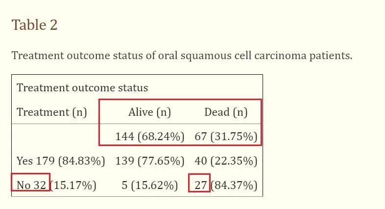 卜罗奇被打动了,她说一年多过去,自己依然记得乔纳森舌头上的斑点的那一刻:“太酷了,我能识别并及早发现它,他还在这里。”是癌症就危及生命。一项研究显示,口腔癌早期5年存活率可达60%,但晚期存活率则降到40%。另一项研究显示,参与研究的211名确诊患者中,144人存活,67人(31.75%)死亡。接受了治疗的179人中有40人死亡,没有接受任何治疗的32人中有27人(84.37%)死亡。