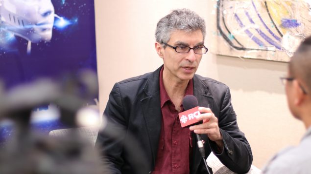 人工智能三位大师之一Yoshua Bengio接受加广沈二采访。(赵杨平拍摄)