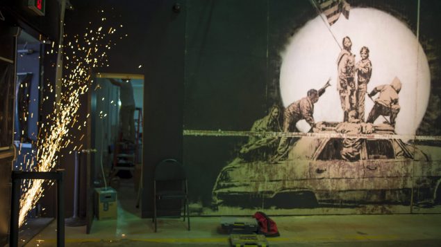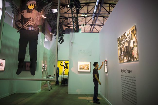 Banksy艺术展正在布展。THE CANADIAN PRESS/ Tijana Martin.