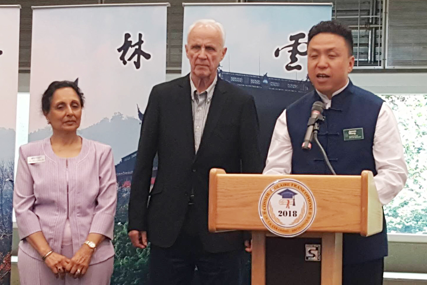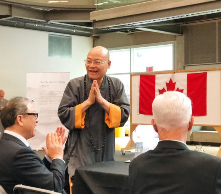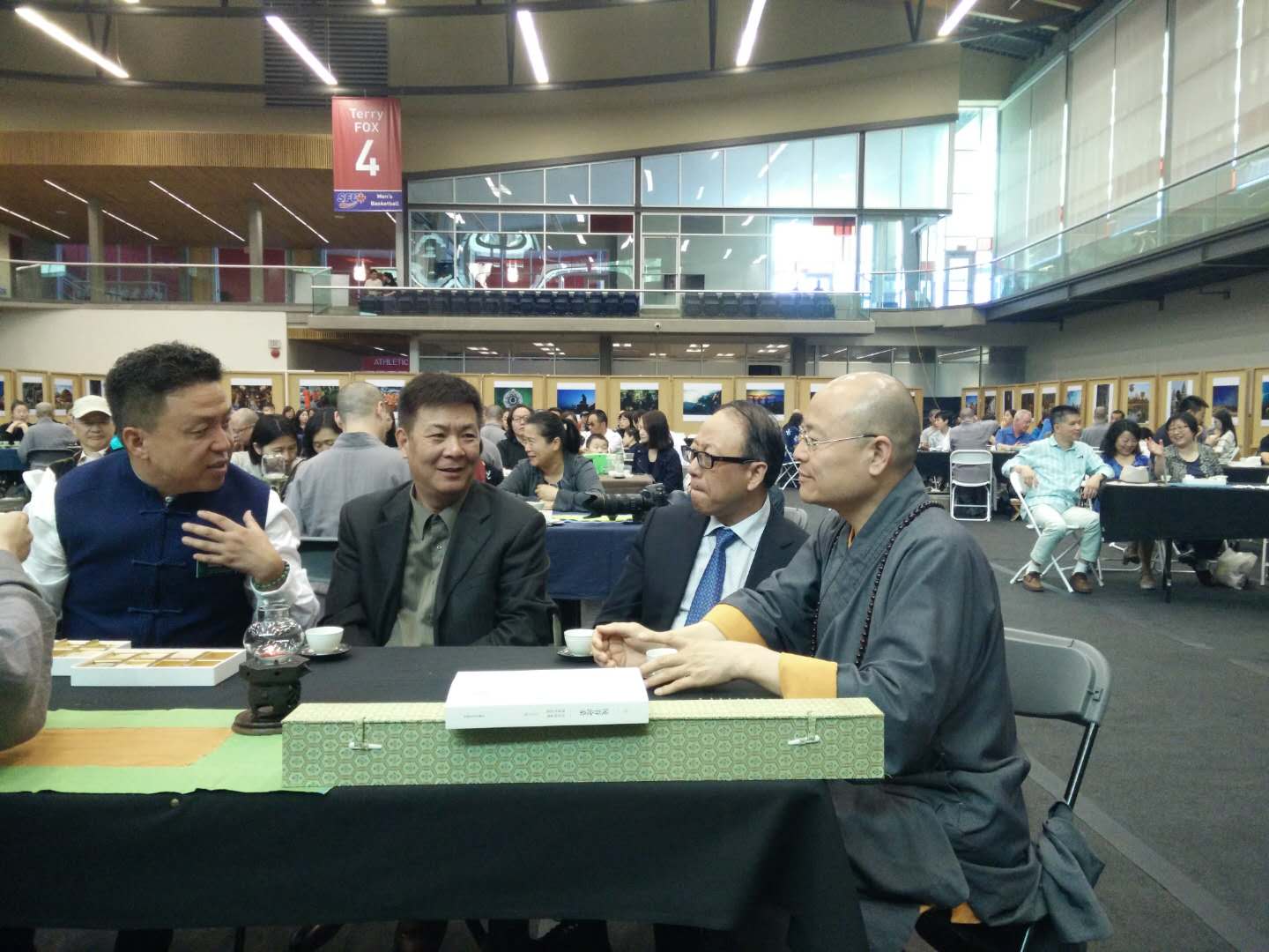 (本报讯)六月二十四日,正值温哥华美丽宜人的初夏,午时一点,在西门菲莎大学的健身中心高大宽阔的场馆内,一场由本那比市政厅旅游局及康大旅游公司和加拿大杭州同乡会联合举办,由杭州灵隐寺住持方丈光泉法师、僧人举行的一场禅茶佛教文化盛会拉开帷幕。中国驻温哥华副总领事孔玮玮、BC省儿童保育省务厅长陈苇秦、本拿比市议员麦当劳(Paul McDonald)、王白进出席盛会并发表精彩演讲。中领馆文化领事胡晓、本地华人社区侨领陈永涛、王典奇、牛华、杨新才等也共襄盛举。