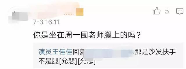 对此,王佳佳可能是哭笑不得,解释说,根本不是坐腿上啊,是沙发扶手。