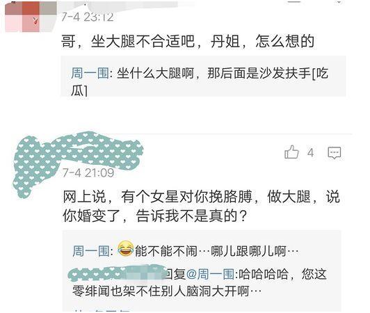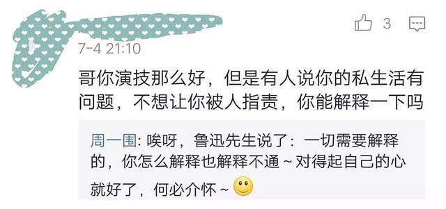 有人让周一围解释一下,周一围说对得起自己的心就好了,何必介怀~