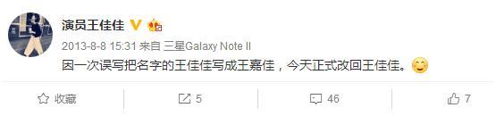 王佳佳出道已经10年,曾经用名王嘉佳,据说是因为她一次误写把名字写错了。