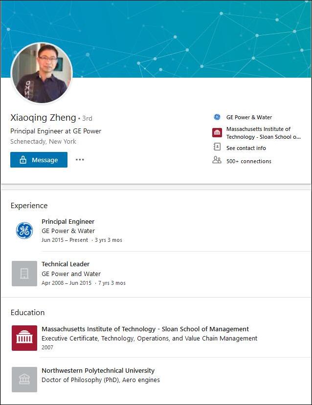 听证会上,郑小清的律师凯文?卢布兰德(Kevin A. Luibrand)表示,郑小清的名誉遭到了不必要的损害,美国政府的很多论据是站不住脚的。没有任何证据可以证明他与中国政府有联系,或者他出售、使用了通用电气的数据。 卢布兰德告诉法官,郑小清复制的内容是根据他自己的专利开发出的程序。指控中也没有显示,他出售了这些数据,或是将之用于自己在中国的企业。 郑小清的领英页面显示,他拥有29项专利,大多都是航空发动机密封技术相关的。![]()