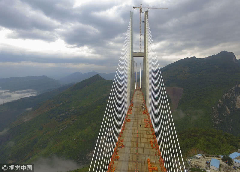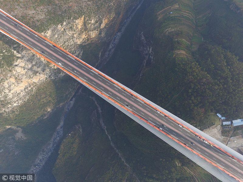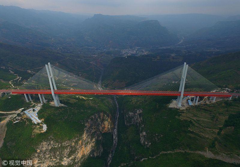 北盘江大桥地处贵州省水城县和云南省宣威市交界处,横跨在峡谷之上。桥面到江面的垂直高度为565米,是世界第一高桥。