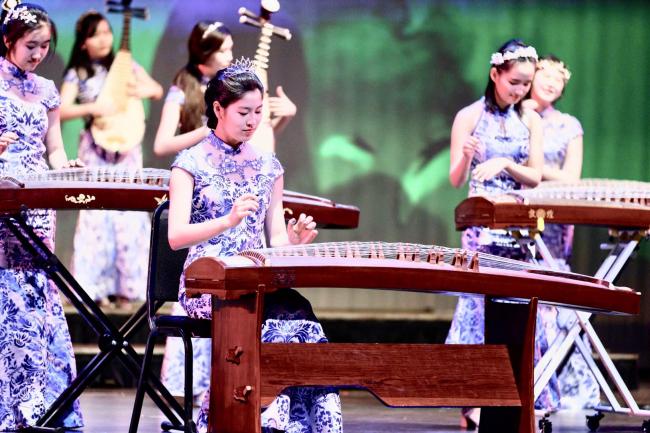 在表演形式上,把古筝琵琶的演奏站坐结合,琵琶演员也全部站立演奏,增强了演员们在舞台的美感和活力,给观众视觉上更多的层次立体感。一首现在孩子们喜爱的《卡路里》,在高老师的编排下,充分发挥古筝琵琶的乐器特点,加入了敲击等多种技巧,使乐曲表现更丰富多彩,增强了音乐的律动感和节奏感,在舞台上把青春少女的活泼美好快乐用民族乐器演绎的淋漓尽致,给观众带来全新的视听盛宴,留下了美好记忆。