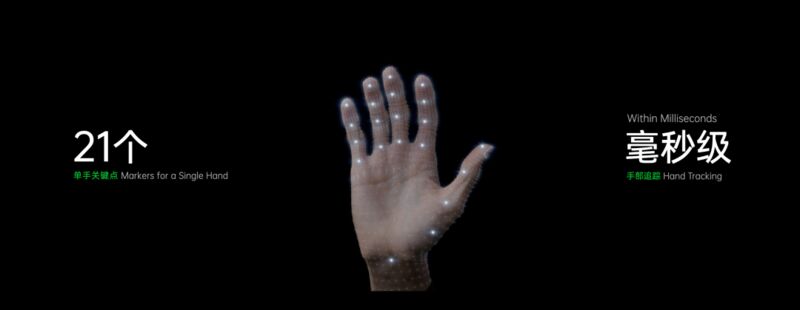 与此同时, OPPO 还设计了 21 个关键点的手部追踪功能,在手势交互和空间的定位上,有更多的操作空间。