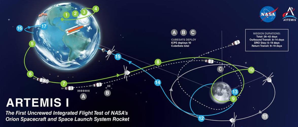 11月25日,猎户座离月球最远的距离将超过9.2万公里。它将在这个轨道上停留大约一周,以测试飞船系统。11月28日,猎户座飞船距离地球最远,将超过43万公里。NASA表示,这将是迄今为止为人类建造的宇宙飞船在太空中飞行的最远距离。