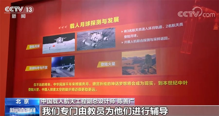 中国载人航天工程办公室主任助理 季启明:我们已经完成了登月用的新一代载人运载火箭、新一代载人飞船和登月着陆器、登月宇航服这些关键技术的攻关,形成了有中国特色的登月阶段的实施方案。今年,按照计划,我们登月阶段的研制建设任务将全面实施。在这同时,我们还开展针对航天员在月面长期生存以及开发和利用月球的资源,我们要开展一系列的预先研究,为中国人探索月球更长远的任务奠定技术基础。