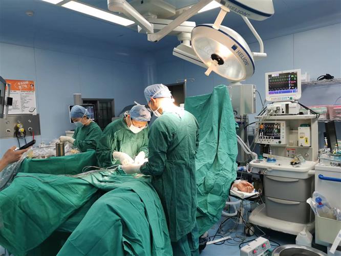 医生们正在进行术前准备工作。本文图片:澎湃新闻记者 曹年润