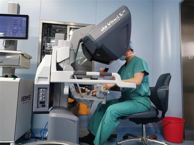 2月15日下午,长征医院,泌尿外科主任任善成正在和达芬奇机器人“合作”进行一场根治性前列腺切除手术。这是他今天的第三位病人,一位66岁的前列腺癌患者。