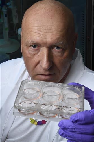 拿着脑类器官培养板的美国约翰·霍普金斯大学布隆伯格公共卫生学院Thomas Hartung教授。