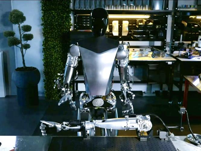 在预先录制的视频中展示了最新一代的Optimus,展示了几个机械人的走路、捡东西和做基本任务。视频显示,它可以四处走动,尽管与 Boston Dynamics公司的具有跑酷(parkour)能力的Atlas机械人相比,速度相当缓慢。它还利用其拇指和类似人类的手,从测试台上拔下一个被肢解的Optmus手臂,拿起它,并把它带到另一个机械人正在工作的工作站。