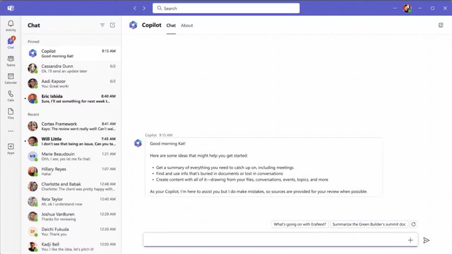 微软还公布了全新功能“Business Chat(商务聊天)”,融入在Microsoft 365以及Windows中的日历、邮箱、文档、联系人等软件中,可以通过“告诉我的团队,我们该如何更新产品策略”等语言提示,让Business Chat协助团队更新会议、邮件等工作状态。