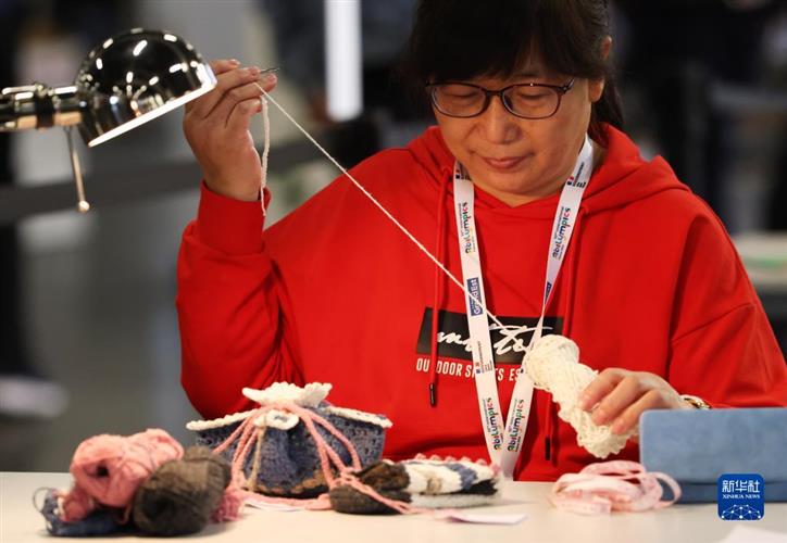 3月25日,在法国梅斯举行的第十届国际残疾人职业技能竞赛中,最终获得亚军的中国选手沙红英参加钩针编织比赛。新华社记者 高静 摄